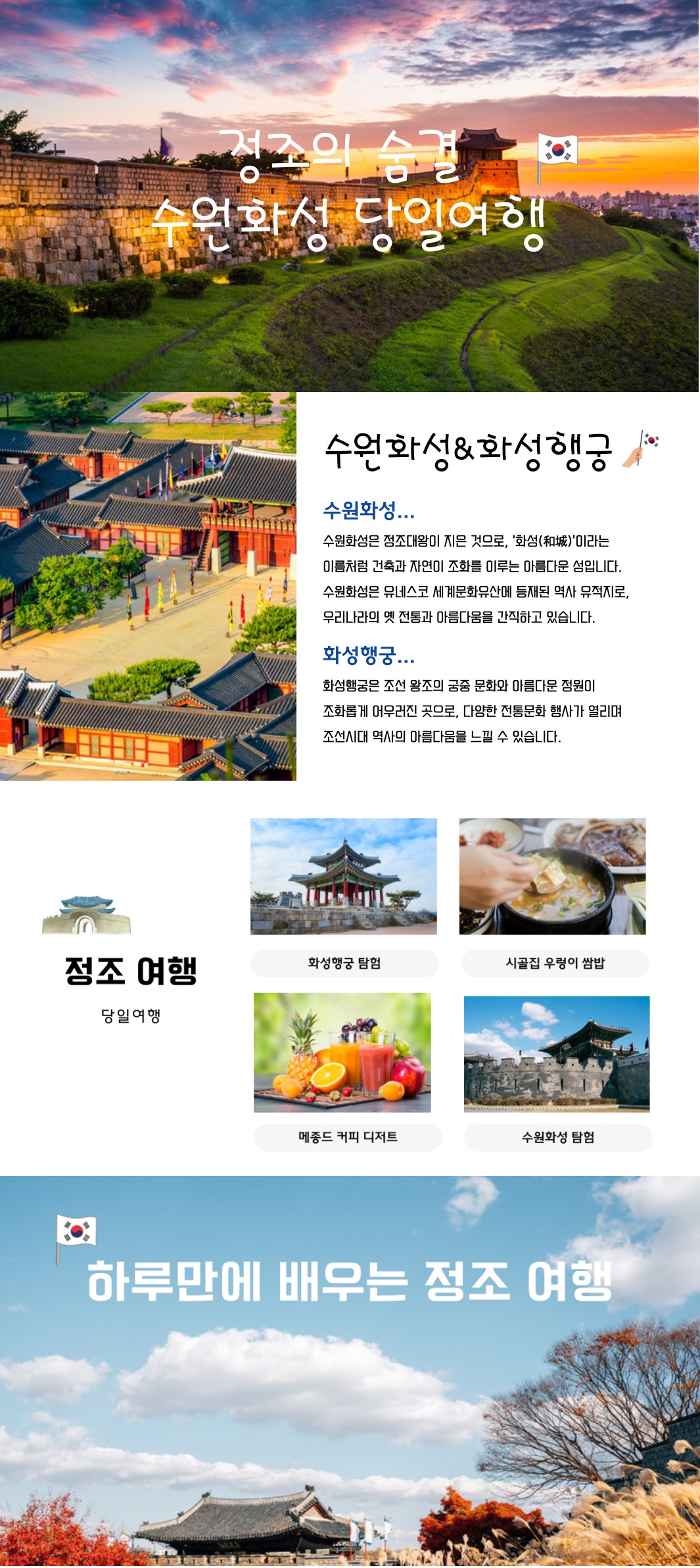 💙 아신투어 정조여행 💙​안녕하세요!아신투어가 수원 정조 여행을 준비했습니다!​당일 투어 상품입니다많은 분들이 화성행궁과 수원화성에 대해 잘 모르실 것 같아서설명 드려보는 시간을 가져볼게요! 아신투어는 전문 가이드분들이 계시기 때문에마음 편하게 즐겨주시면 될 것 같습니다~​홈페이지에서도 해당 상품 확인하실 수 있고전화로도 예약이나 궁금하신 사항언제든지 확인 가능하시니 편하게 연락 주세요!​수원 정조 여행 후회하지 않으시도록 열심히 기획하고 만든 상품입니다!​정조 여행 글 읽어주셔서 감사합니다~항상 행복한 하루 보내시길 바라겠습니다♡https://asintour.co.kr 아신투어아신투어asintour.co.kr